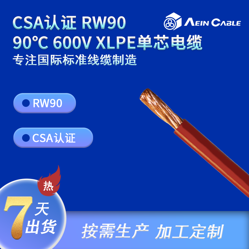 CSA认证 RW90 90℃ 600V XLPE单芯电缆